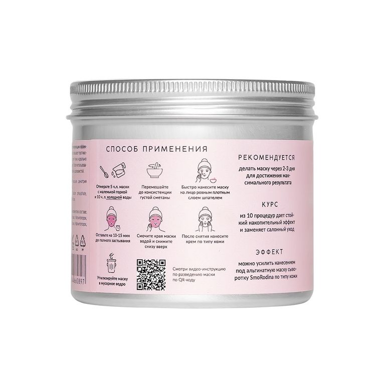 Альгинатная экспресс-маска PEARL от SmoRodina с пудрой морского жемчуга и выраженным матирующим эффектом: если у вас на носу важное мероприятие или вы просто решили существенно улучшить качество кожи лица, эта маска для вас. Одна упаковка маски содержит курс из 8-10 процедур, которые необходимо сделать через 2-3 дня (для устойчивого результата). В результате вы получите: кожу, о которой даже не мечтали, ровный тон, отсутствие сухости и высыпаний, осветление шрамов и пигментации, подтянутый овал лица. Состояние вашей кожи будет вызывать удивление и комплименты – настолько видим эффект курсового использования!